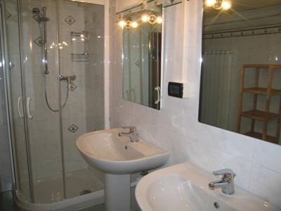 Bathroom (toilet, basin, 2 sinks, shower-box, washing machine)